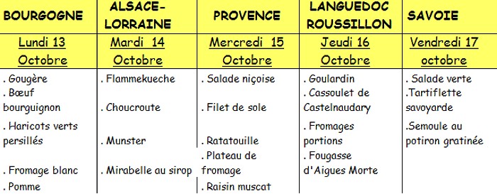 Pour cette semaine du goût 2014, les restaurants d’enfants de Blanzy mettent les régions de France à l’honneur !