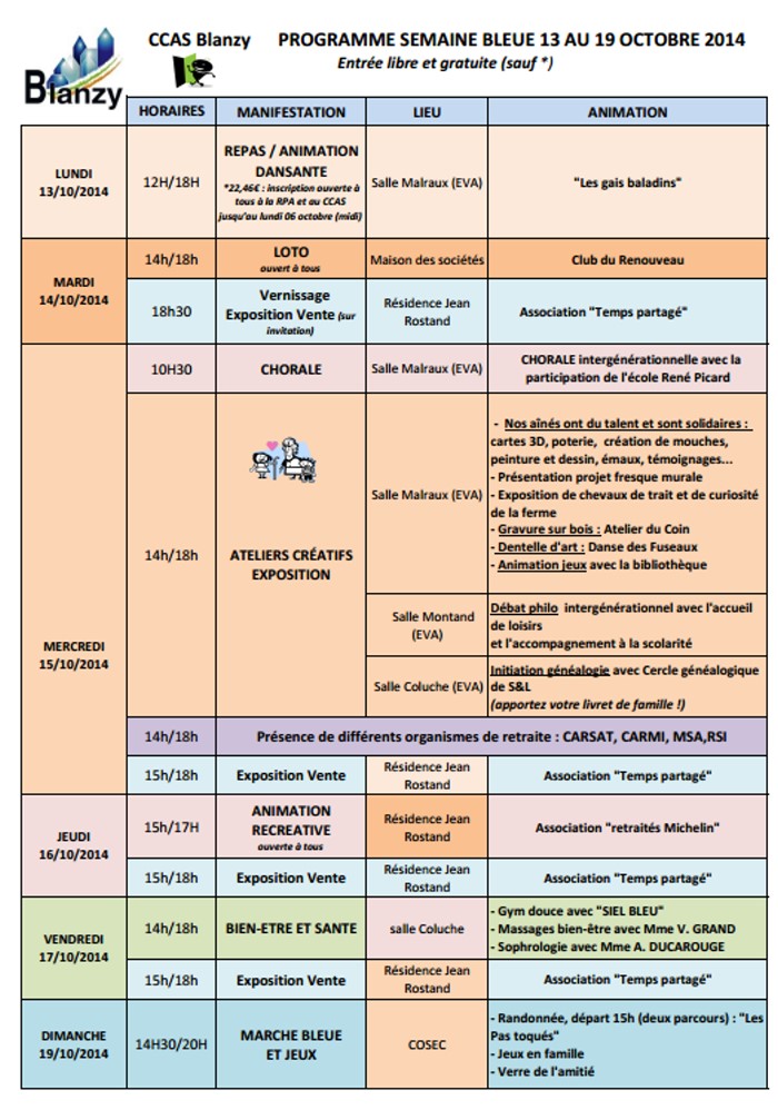 C’est dans la grande salle (André Malraux) de l’Espace de Vie et d’animation qu’a eu lieu à midi, ce lundi, le lancement de la Semaine Bleue, semaine qui entre dans le cadre de l’action nationale du même nom que nous vous avons déjà présentée sur ce site dimanche 5 octobre dernier.