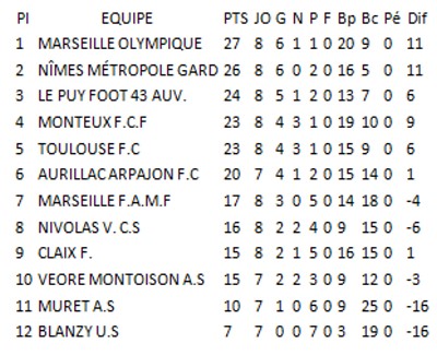 Pour la 8ème journée du championnat de France National D2, L’US Blanzy féminines s’est inclinée face au Puy Foot 43 Auvergne sur le score de 2 buts à 0.