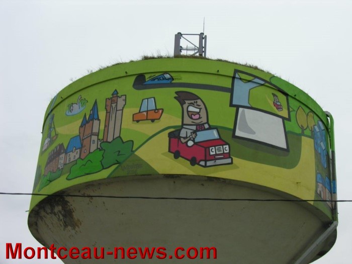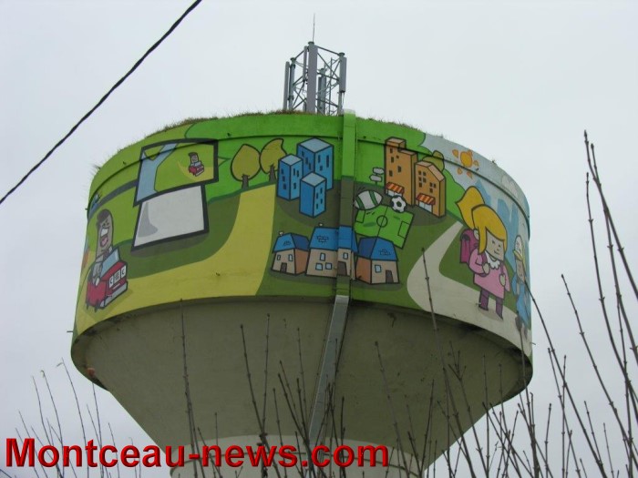 L’ancien château situé en haut de Blanzy, au bord de la route qui mène à Montcenis, a longtemps servi à distribuer l’eau à la commune. Après la modification des réseaux d’eau potable, la CUCM qui en était propriétaire voulait le détruire, mais un concours de circonstances a fait se rencontrer un responsable de la CCM, Gilbert Nectoux et un responsable d’Orange, Bernard Tessier et, de leur rencontre est venue l’idée de céder le château d’eau à l’opérateur de téléphonie mobile. Orange a donc acheté l’édifice pour conserver son antenne qui y était installée. Par la suite, le projet d’associer le Centre Social pour créer une fresque est né avec le concours de la Municipalité blanzynoise et en particulier avec Floriana Bouillot, l’élue de la ville.