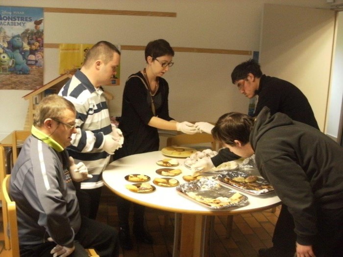 Pour l’équipe aussi les rencontres et les échanges sont importants, et la préparation du téléthon a été aussi l’occasion de se réunir avec le Foyer de Bourgogne autour d’un atelier pâtisserie( composition d’assiettes gourmandes vendues le jour du téléthon).qui a donné à chacun l’envie de renouveler cette expérience. Des rendez vous sont déjà pris pour le début d’année.
