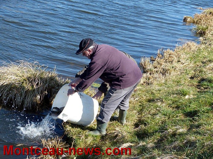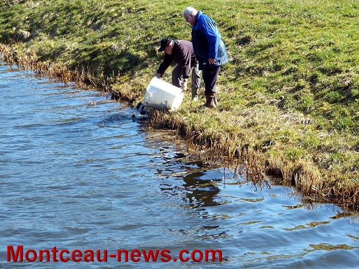 Ce jeudi matin, les sociétaires des Chevaliers de la Gaule (Blanzy), avec à leur tête le Président André Papillon ont mis à l’eau plus de 200 kgs de ce beau poisson :