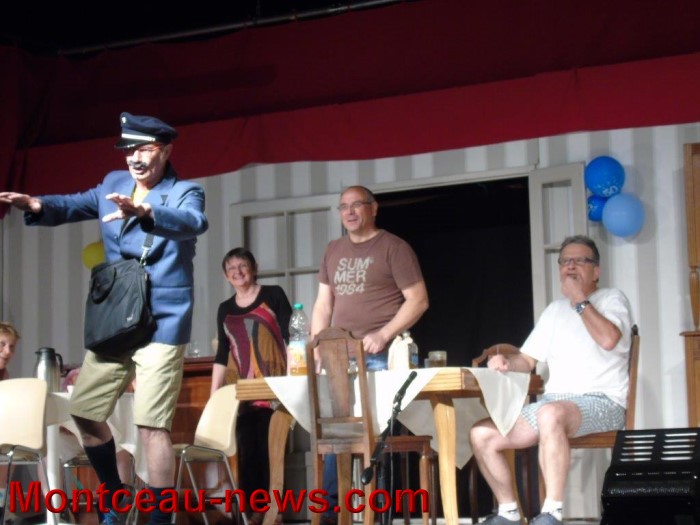 Tout d’abord, tous les adhérents ont participé dans « Bienvenue au gîte » qui est une immersion dans la vie du club lors d’un week end en gîte dans une sacrée ambiance…. Ensuite 7 comédiens et des figurants nous ont conduit dans les péripéties complètement folle d’une « Vente aux enchères » désopilante…. Et enfin, 7 acteurs, à nouveau, nous ont fait vivre « l’expertise », où concours de circonstance accidentel et amnésie de l’expert, mensonge et infidélité de Pierre Grandin, suspicion et enquête de Madame Grandin et d’un détective et puis une histoire d’Amour se mélangent à souhait pour faire éclater de rires un public conquis.