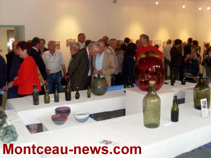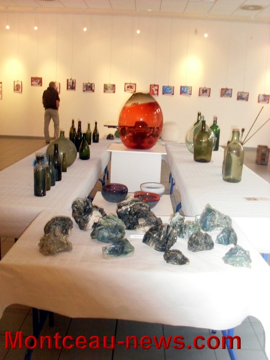 C’est une remarquable exposition que nous sommes amenés à parcourir parmi des anciennes photos pleine de nostalgie sur les verreries , parmi les outils d’époque , parmi les magnifiques œuvres de nombreux artistes dont le « local » Mr Bernard Dubourg qui œuvre à l’ancienne église du Magny et qui a participé activement à cette « symphonie » par la création des bouteilles , leur exposition et également avec l’exposition de certaines de ses œuvres . Sont aussi présentes les bannières de la Fanfare des Anciennes verreries.