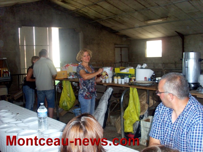 De midi à tard dans la nuit , on se met à table , on rigole , on joue aux boules , on se remet à table , on re-rigole , on blague , on chante , on écoute les cors de chasse et on fait le plein de convivialité. C’est lorsque ça se termine , qu’on se dit que ça passe vite et que , inversement ça va être long d’attendre le 1er dimanche de juillet 2012. Les invités s’en vont comblés , les chevilles ouvrières en ont ben encore pour tout demain à débarrasser et à tout remettre en ordre … quel courage !