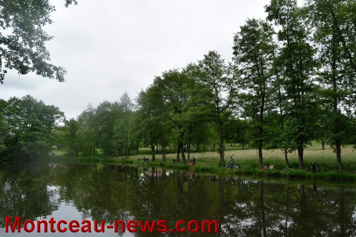 Certaines truites font les malines vers le déversoir, qu’elles se méfient ces belles argentées… il y a des disciples d’Izaak Walton, des fines gaules autour de l’étang.