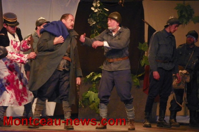 Au centre, les Poilus chantent, dansent et égratignent la hiérarchie avec un bel humour et beaucoup de subtilité.