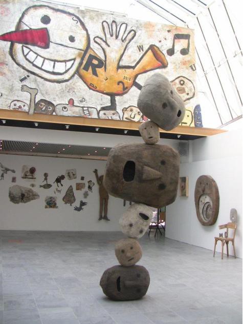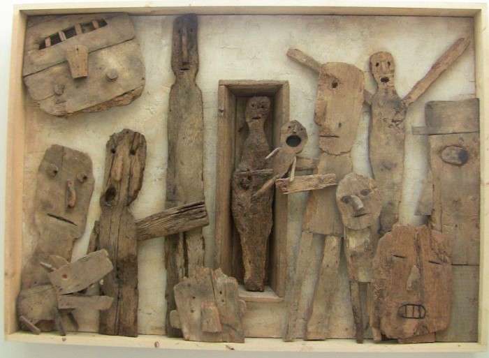 Des artistes qui travaillent toutes les techniques et tous les matériaux : tantôt à plat sur papier ou carton, tantôt en volume, leurs œuvres utilisent aussi bien aggloméré, bois, pierres, toile de jute, terre, carton, ficelles, ferrailles, papier, paille, carton et sable que divers matériaux bruts ou objets de récupération. Des objets qu’ils stockent dans leur atelier jusqu’à ce qu’ils trouvent une idée pour leur redonner une seconde vie !