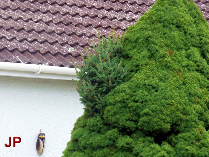 Je t’envoie des photos du jardin de ma voisine à Blanzy , c’est une bizarrerie de la nature, en effet on voit un arbre qui a poussé au milieu d’un autre… »