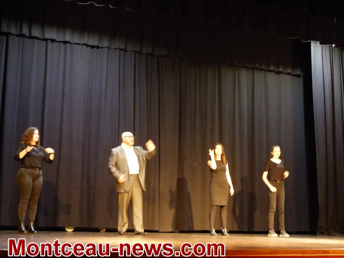 Des chants signés tels « Je vole » avec deux jeunes filles de l’association, « On voulait vous parler de nous » « Amoureux d’un ange » et « Maman Chico » avec Daniel Fernandez et sa guitare ont permis à la salle de se familiariser avec la langue des signes.