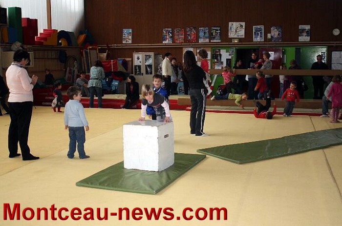 Ce mercredi matin , le COSEC accueillait les enfants du Baby Gym , de l’Eveil Gymnique et du Baby Ballon , c’est-à-dire une trentaine d’enfants accompagnés par leur proches .