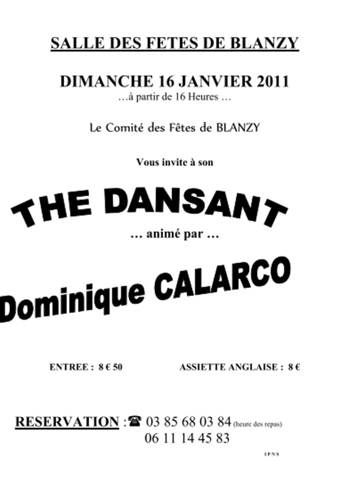 Thé dansant, le dimanche 15 janvier 2012, animé par Dominique Calarco