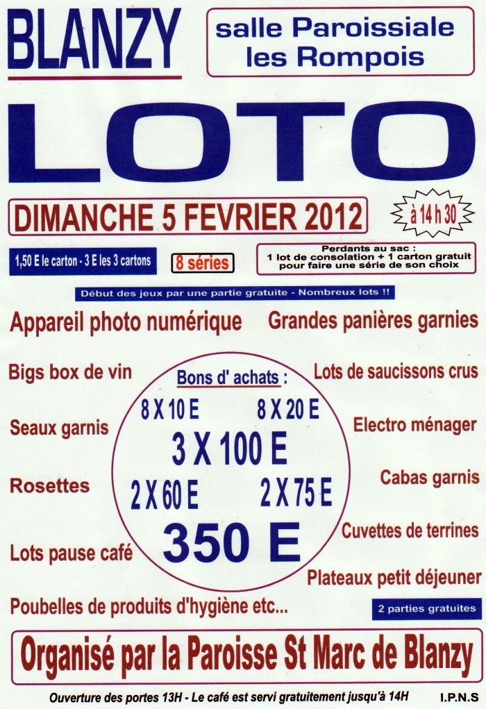 Grand loto, ce dimanche 5 février 2012
