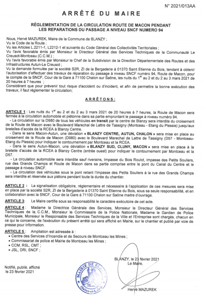 De nouveaux travaux auront lieu la semaine prochaine au passage à niveau de Blanzy.