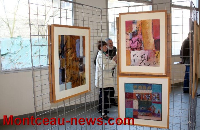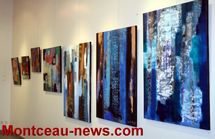 A son tour cette dernière remercia la ville pour son accueil « chaleureux et très professionnel » et nous expliqua sa démarche artistique « j’utilise des subterfuges, empreintes, délavages, convoque l’aléatoire afin de puiser au plus profond de moi-même mon écriture véritable« . Les signes graphiques ponctuent l’œuvre,accroches visuelles ou code d’accès, invitant le spectateur à partager une certaine spiritualité. Ambiances colorées, riches et subtiles inspirées par ses voyages s’y retrouvent.Elles évoquent l’Orient et ses tissus précieux.L’influence de Chagall (couleurs en multiples nuances, palette d’émotions) .Le Contrôle et le laisser aller se cotoient . C’est une alchimie fragile et discrète qu’il faut savoir accueillir sans la dépasser. Un moment de grâce qui nourrit sans cesse la quête de l’artiste.