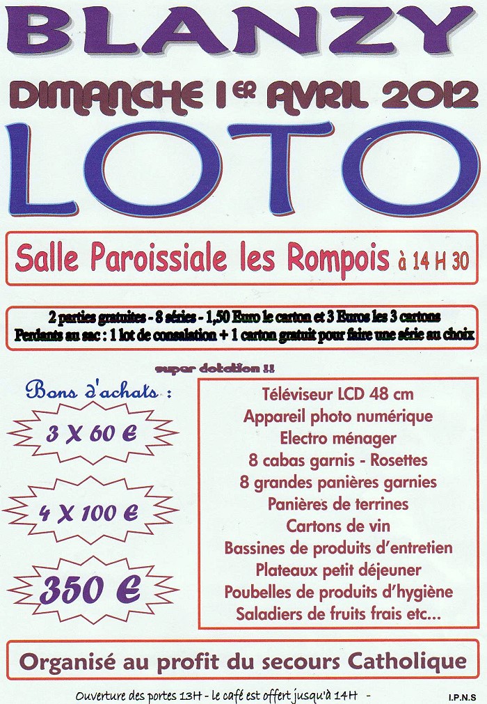 Loto, le dimanche 1er avril 2012 à Blanzy