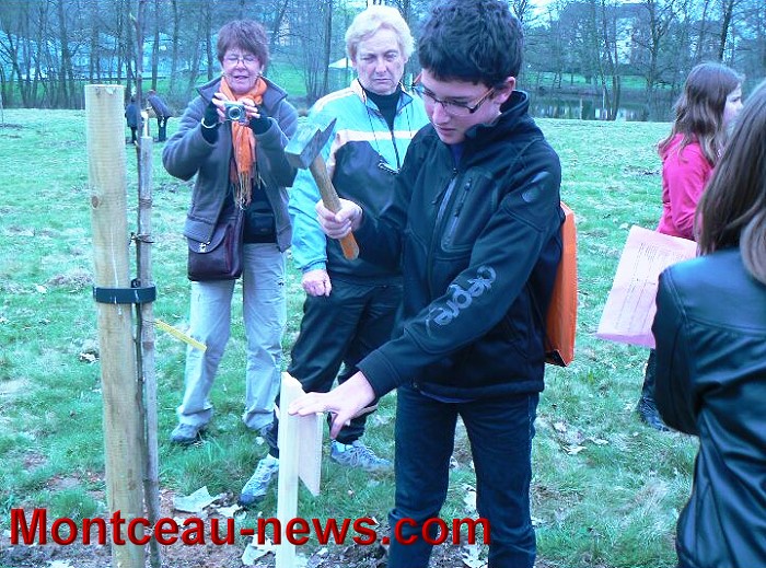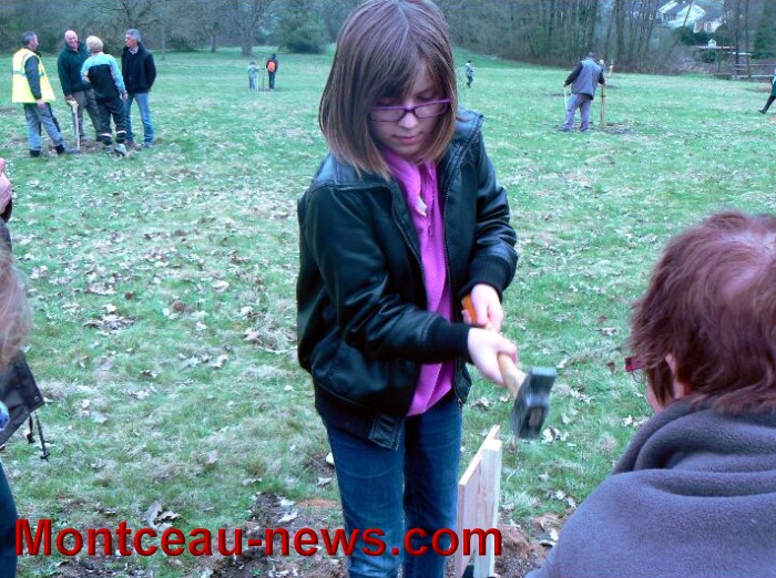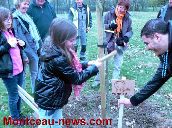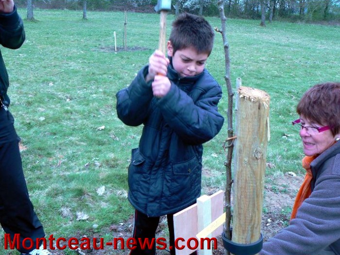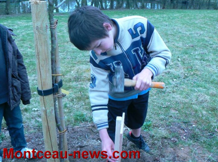 Ce fut ensuite l’étiquetage des arbres fruitiers du verger conservatoire que les enfants ont réalisé avec un grand sérieux et l’on continua la balade en découvrant le vieux pont du parc que l’idée de restaurer vint à l’esprit des présents et oui… pourquoi pas ? chiche ?