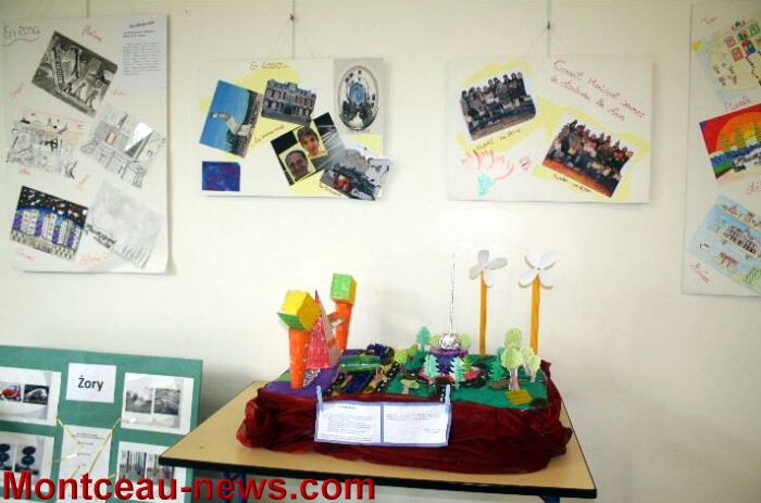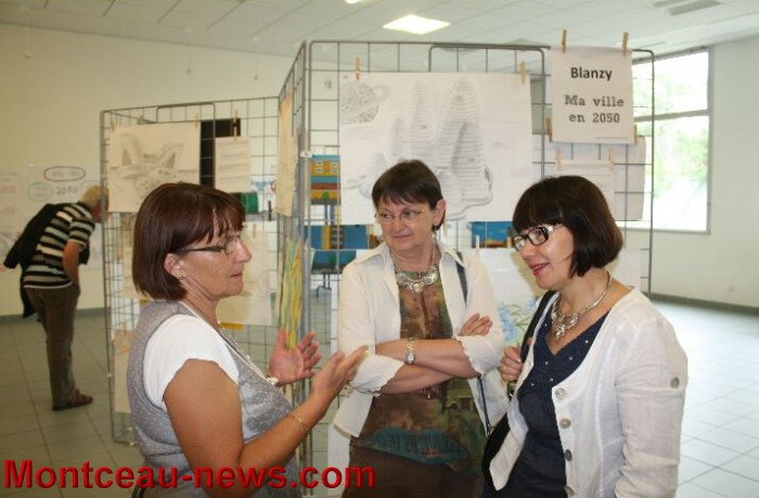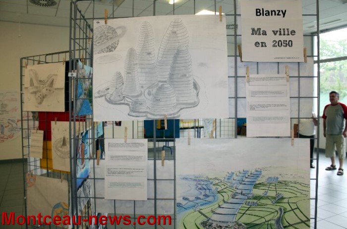 depuis plus d’un an travaillent sur la création de dessins, de maquettes, de tableaux pour cette exposition sur le thème de « ta ville en 2050 » et c’est cette exposition , qui tourne dans les villes du bassin minier, qui a fait l’objet d’une visite, ce lundi, en présence d’Hervé Mazurek et de Maurice Martin pour la Municipalité de Blanzy et des représentants des comités de jumelage, M. Tremeau (Blanz), Vallabrègue et Secret (Montceau), Schimpf (Sanvignes).
