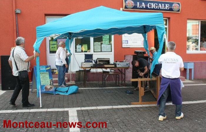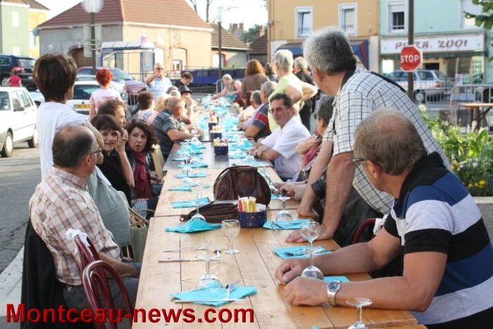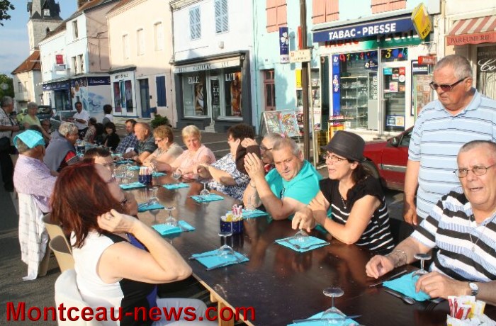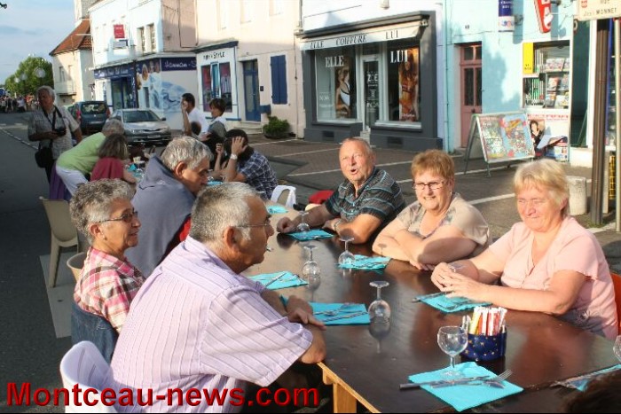 Tout près de là, sur la rue, le restaurant « La Cigale » avait dressé une longue table et c’est en écoutant des morceaux de musique populaire, (DJ abrité… au cas où… sous un chapiteau monté en dernière minute), que les convives ont pu ajouter au plaisir un bon moment gastronomique. C’est çà aussi, la fête !