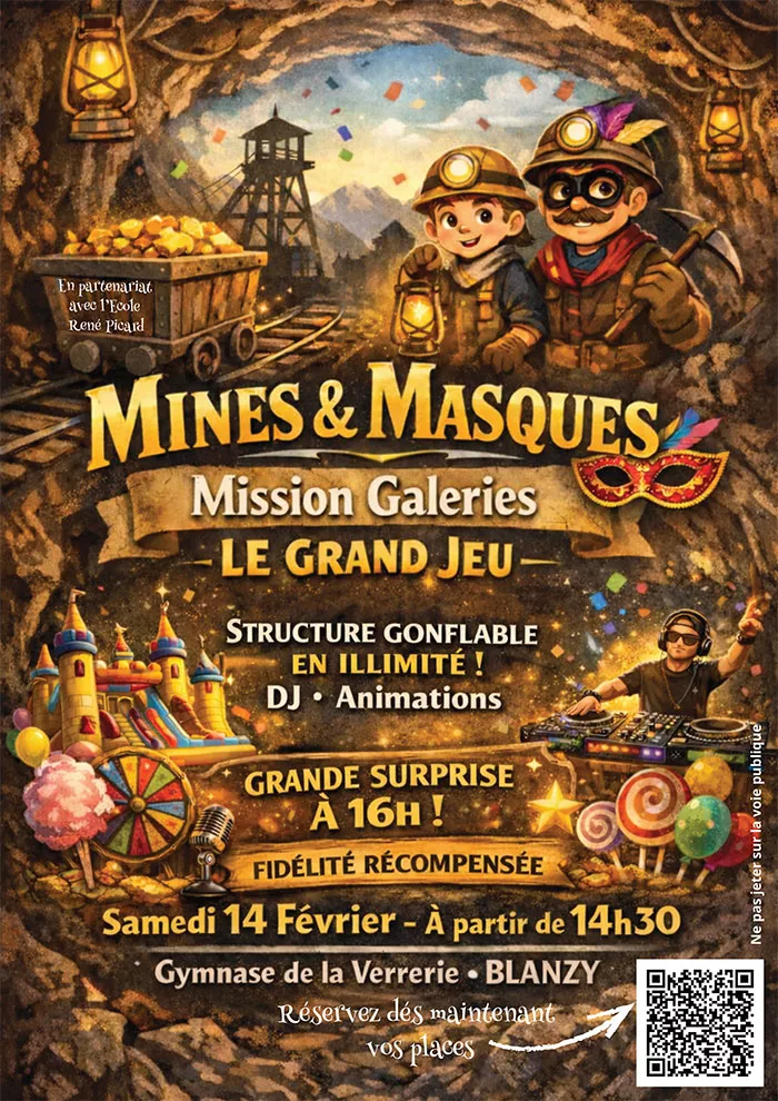 Une journée thématique immersive, placée sous le signe des mines, du jeu géant intergénérationnel et de la convivialité. Petits et grands seront invités à participer à une expérience ludique unique, pensée pour rassembler, surprendre et faire vibrer l’esprit du carnaval autrement.