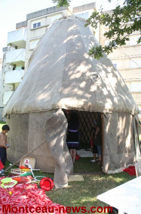 – Le cirque d’Ailes Fines, de Savigny sur Grosne, managé par Delphine Descombins qui avait installé la veille une superbe Yourte où, à l’intérieur et à l’extérieur, les enfants et les grands pouvaient s’essayer à tous les exercices et toutes les acrobaties du cirque.