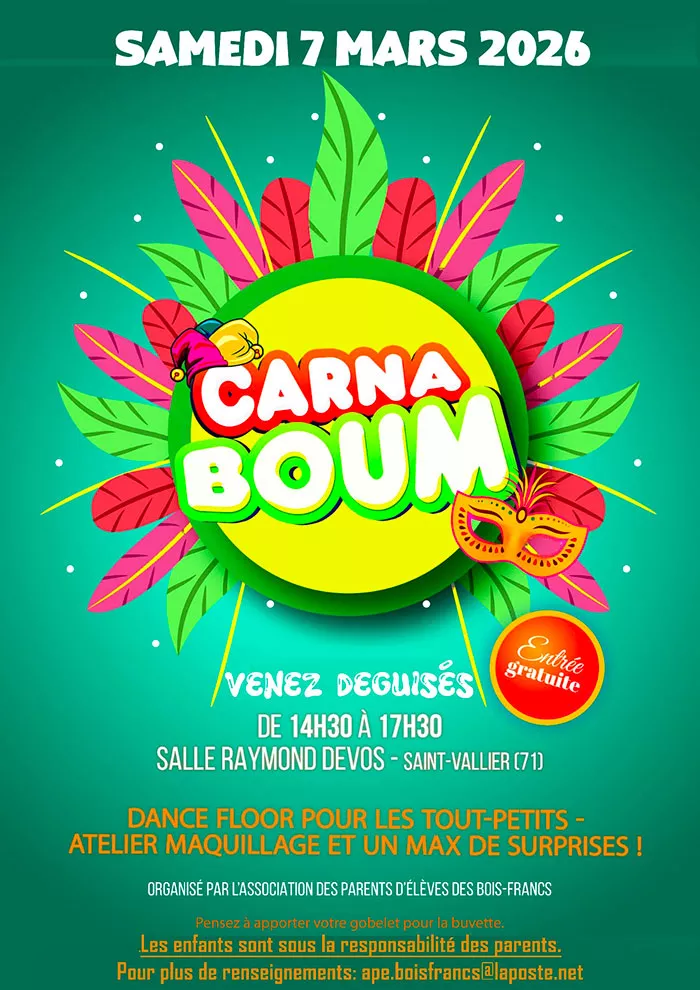 L’association des parents d’élèves des Bois-Francs organise son traditionnel Carnaboum, samedi 7 mars 2026 de 14h 30 à 17h 30 à l’Espace Devos.