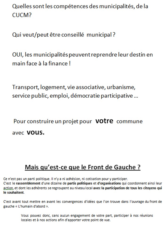 Assemblée citoyenne en vue des municipales 2014, ce vendredi 20 septembre 2013
