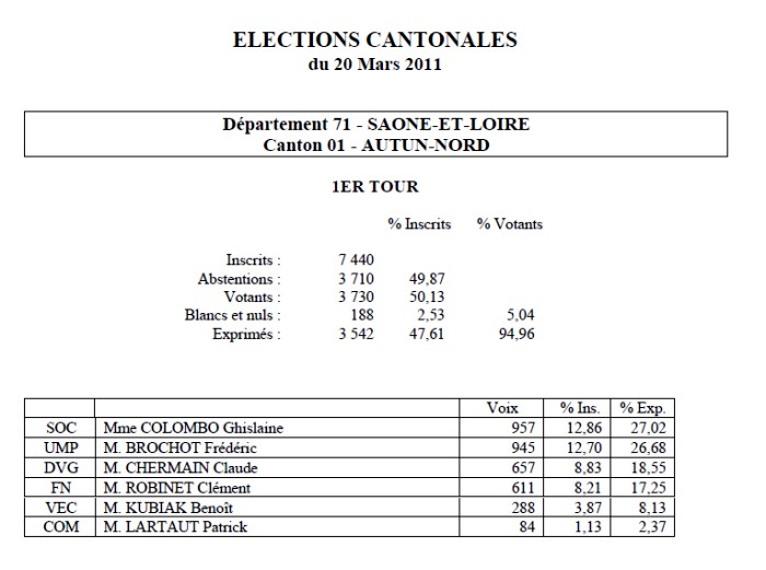 Cantonales 2011 : résultats canton Autun Nord