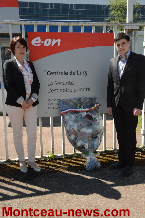 Laure Ferrari (Debout la République) dépose une gerbe à la centrale Lucy de Montceau-les-Mines