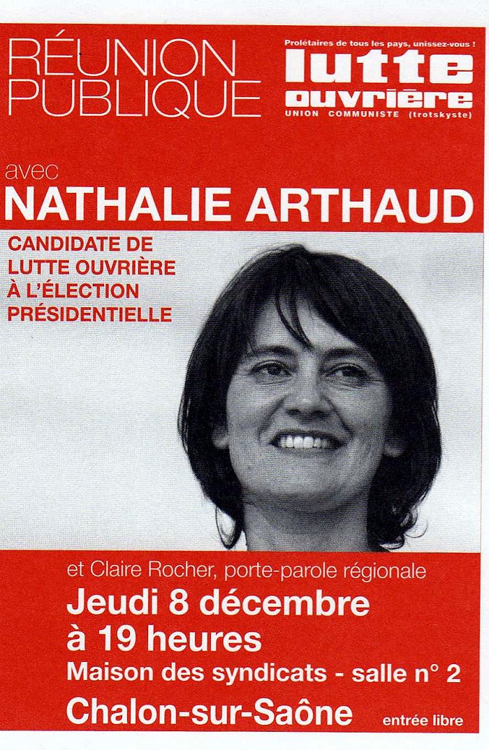 Nathalie Arthaud, candidate de Lutte Ouvrière, à Chalon-sur-Saône le jeudi 8 décembre 2011