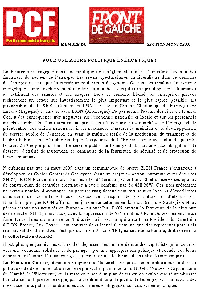 Le PCF et le Front de Gauche plaident pour une autre politique énergétique !