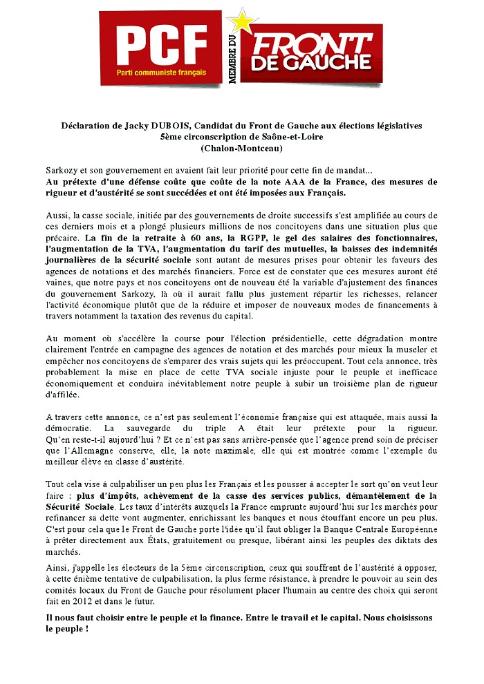 C’est une bien belle phrase qui nous démontre que le Front de Gauche n’est qu’un parti dont le but est d’aménager le capitalisme financier…sans remettre ce système en cause…Comme certains veulent moraliser ce capitalisme !!!