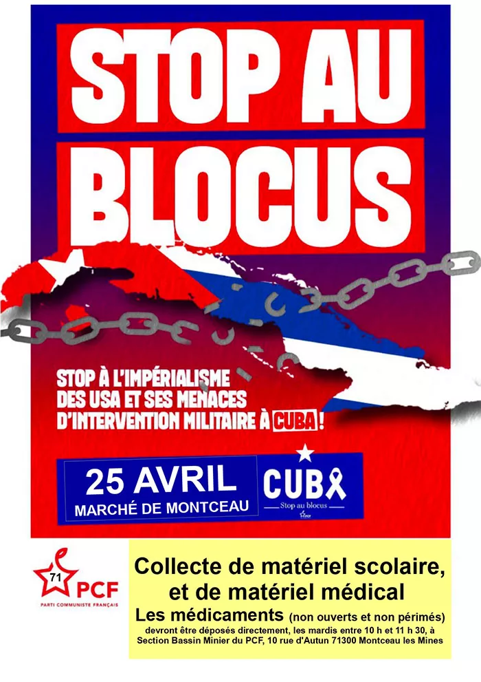 La section PCF du bassin minier appel aux dons ce samedi 25 avril sur le marché de Montceau-les-Mines.