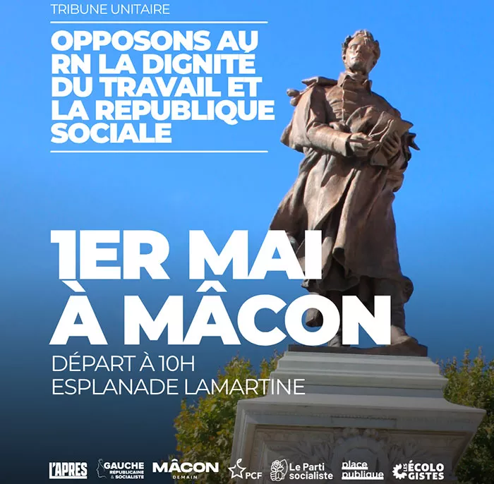 Nous appelons l’ensemble de nos militantes, militants, sympathisantes et sympathisants, mais plus largement toutes celles et ceux qui restent attachés à la justice sociale et à la fraternité républicaine, à rejoindre massivement le rassemblement de l’intersyndicale à Mâcon ce 1er mai avec un départ à 10 heures depuis l’esplanade Lamartine.