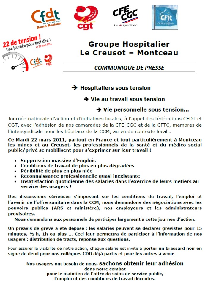 3 commentaires sur “Groupe hopitalier Le Creusot – Montceau : « 22 de tension ! »”