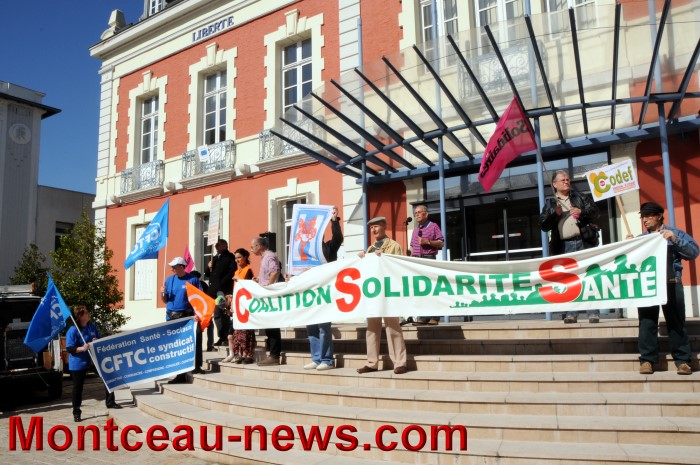 Dans son allocution, le secrétaire de la coalition, allocution prononcée sur les marches de la mairie a demandé le retrait de la loi Bachelot mais aussi fait le point sur la situation au centre hospitalier de Montceau.