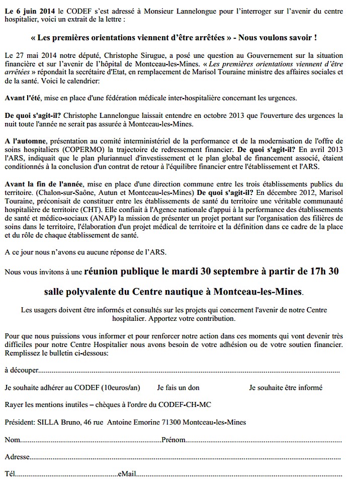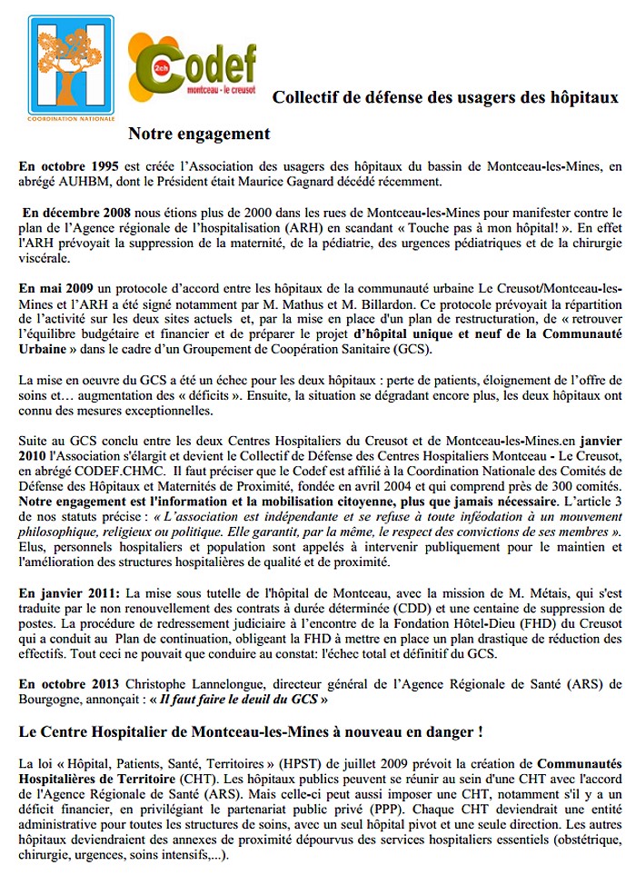 Un commentaire sur “CODEF – Collectif de Défense des Centres Hospitaliers Montceau – Le Creusot”
