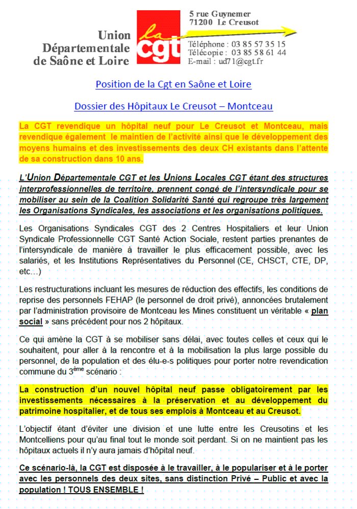 Avenir des hôpitaux Creusot-Montceau : éviter la division