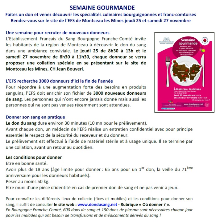 Les 25 et 27 novembre 2010 : donnez votre sang et découvrez des spécialités culinaires