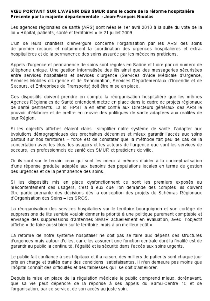 Un voeu porté par la majorité départementale dans le cadre de la réforme hospitalière