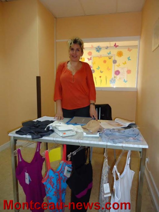 Avec douceur également, Ingrid, se situant dans la même pièce que notre coiffeuse, proposait des prothèses mammaires et de la lingerie, afin de permettre aux femmes de garder toute leur féminité.