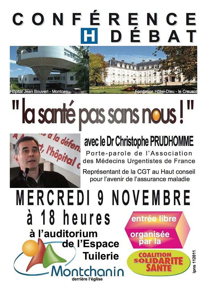 Thème d'une conférence du Dr C. Prudhomme, porte parole des médecins urgentistes de France, le 9 novembre 2011