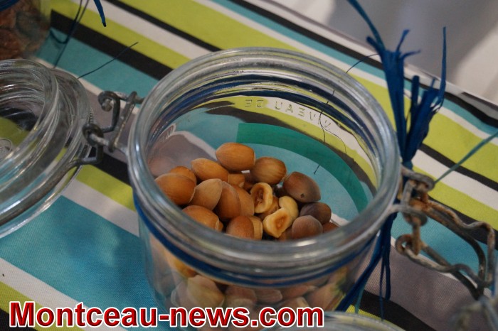 Sur une table on pouvait déguster des fruits à coques variés des plus connus (noix, noisettes par exemple) aux plus surprenants par leur présence (graine de tournesol, graine de lin etc.).