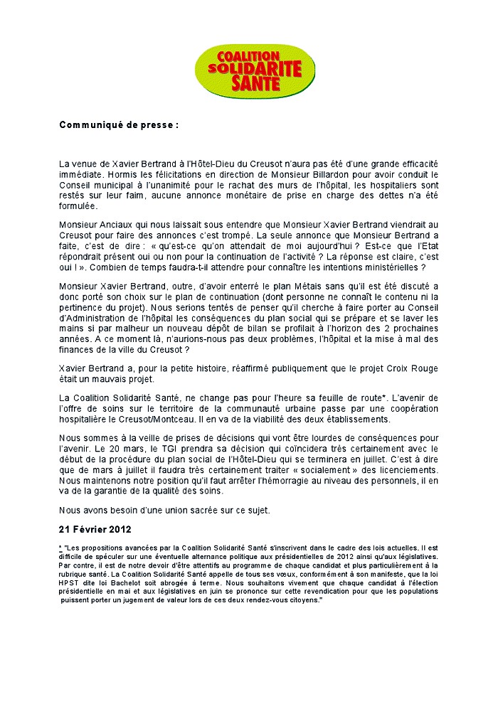Un commentaire sur “Coalition Solidarité Santé”