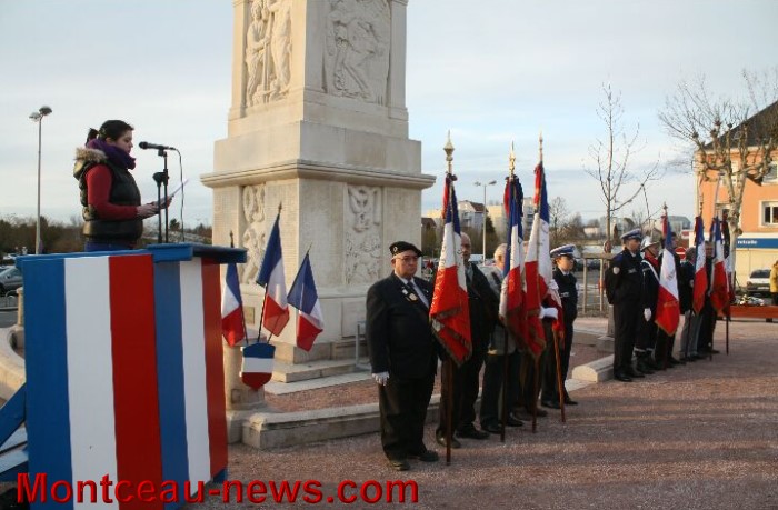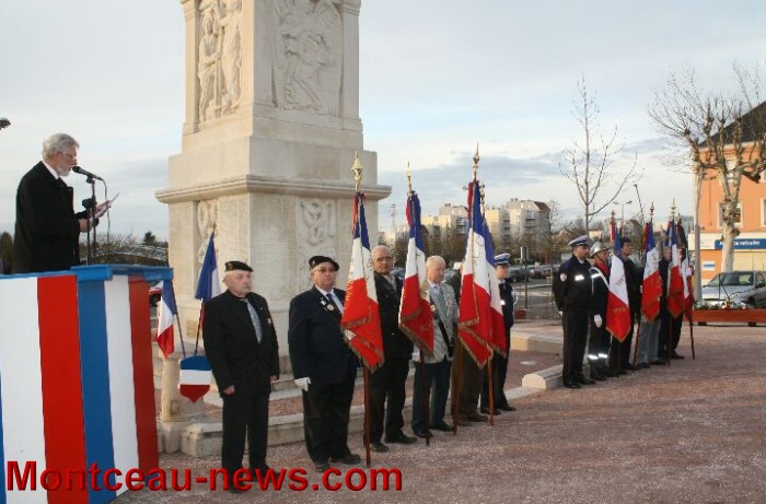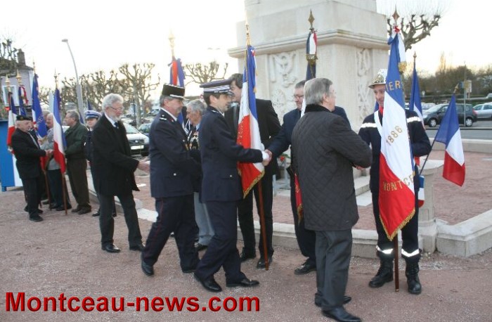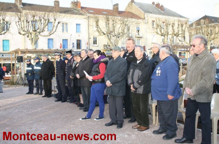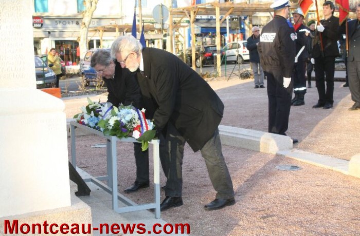 Autour du Maire Didier Mathus, étaient présents de nombreux membres du Conseil Municipal avec Mmes Foucherot et Jarrot et MM. Guillon, Monnet, Simon, les corps constitués de la Police nationale, de la Police Municipale, des Pompiers et les représentants des organisations d’Anciens combattants dont Gilbert Clément du Comité de Liaison qui régla la cérémonie et bien sûr Daniel Comte Président de la FNACA de Montceau.