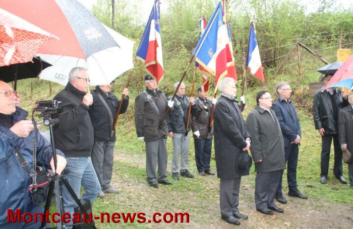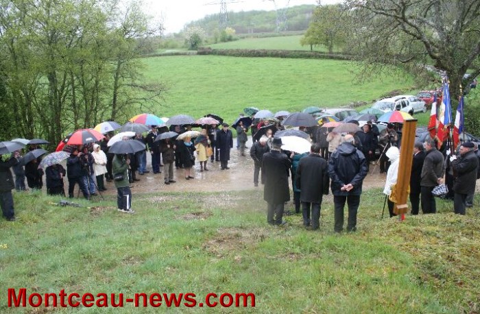 Sur place, sous une pluie incessante et froide, autour du Président des CVR de Saône et Loire, Roger Vincent, étaient présents Lucien Zajdel, Vice Président, Marie Claude Jarrot, Vice Présidente, Yves Andreu, Directeur du Service départemental de l’Office national des anciens combattants et victimes de guerre de Saône-et-Loire, représentant le Préfet de Saône et Loire, Christian Galland, Maire de Burnand, Pascal Langlois Maire de Curtil sous Burnand, Jean Pierre Chapelon, Vice Président du Conseil Général, des représentants d’association du monde combattant (dont par exemple l’Union Montcellienne des Combattants), les porte drapeaux et de nombreux sympathisants.