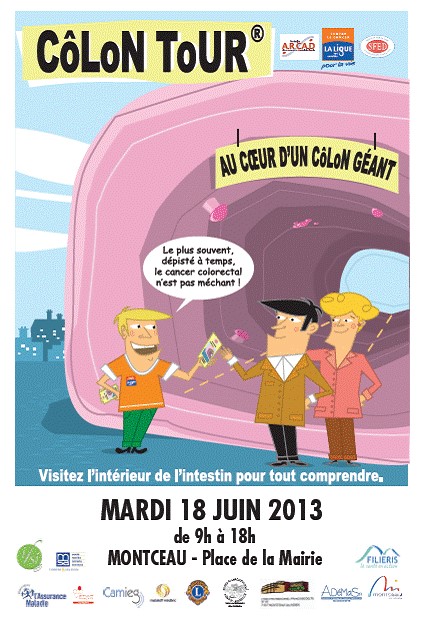 Cet outil pédagogique se présente sous la forme d’un côlon gonflable géant que le grand public pourra parcourir de l’intérieur ; colon installé sur la place de la mairie.