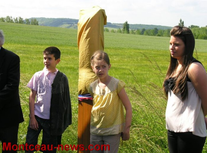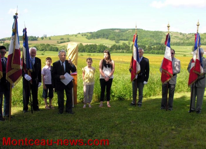 Le Chant des partisans précéda le dévoilage du totem par les 2 Maires du Puley et de Genouilly, aidés par les 3 arrières petits enfants de Roger Héritier, résistant déporté, prénommés : cyprien, clotilde et Delphine.