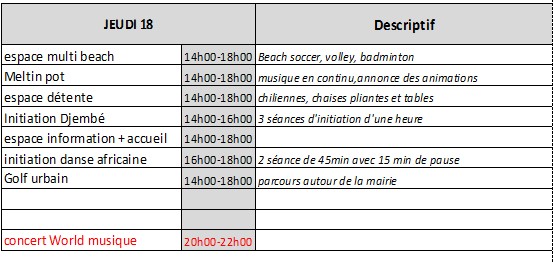 Au programme de cette semaine festive, des activités sportives et culturelles, un espace détente et des animations chaque soir.