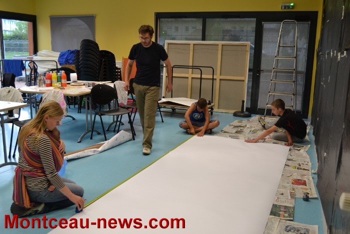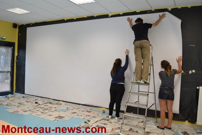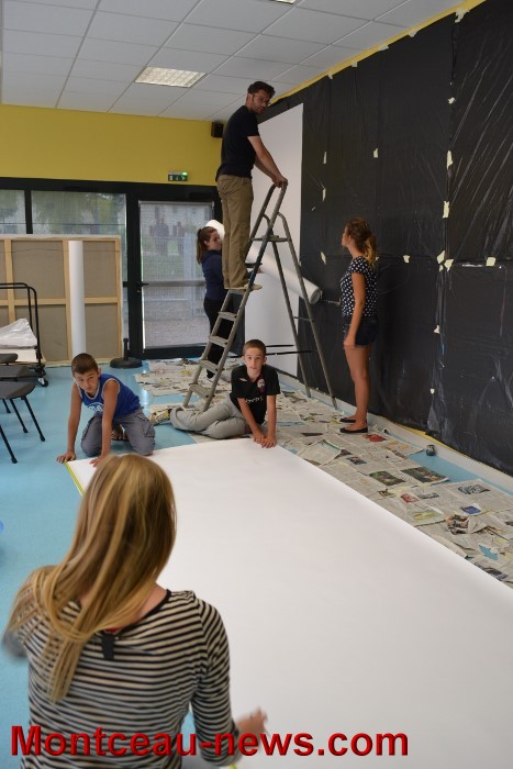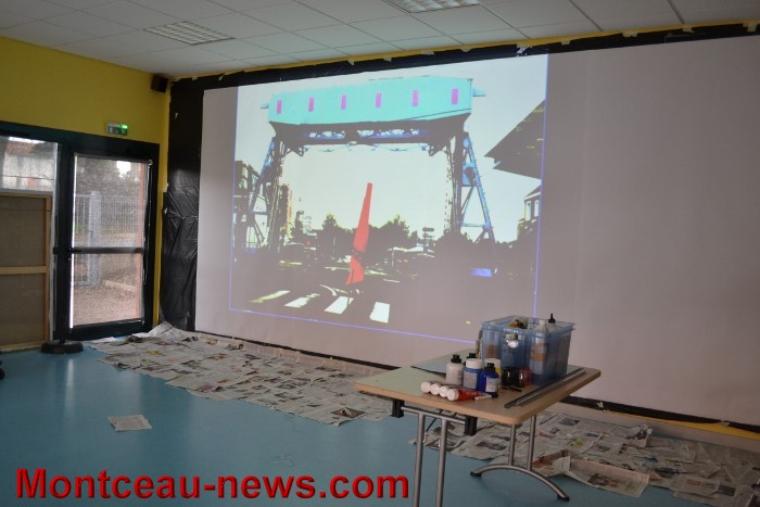 Cette semaine les enfants et Cédric Jacquillard se sont lancés dans la création d’une fresque de 6 x 3 m avec comme inspiration, différentes photos prisent par leurs soins de la ville de Montceau.